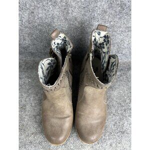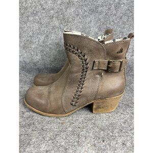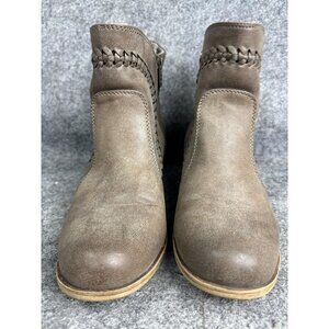 Roxy Boots Womens Size 7.5 Taupe Brown Ankle Braided Side Zip Buckle