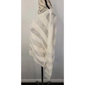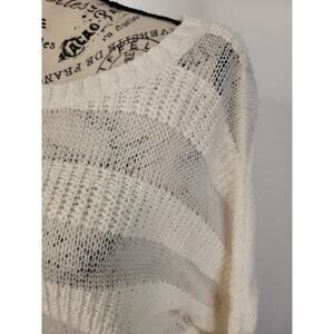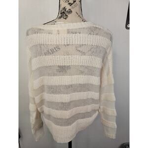 Roxy Boxy Open Knit Sweatshirt Top Sz Small Ivory Sheer Striped Beachy Boho