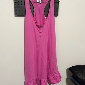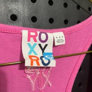 Vibrant pink racerback tank by Roxy. Lightweight, soft knit fabric. Subtle embroidered detail at the back. Casual piece for everyday wear.