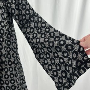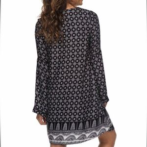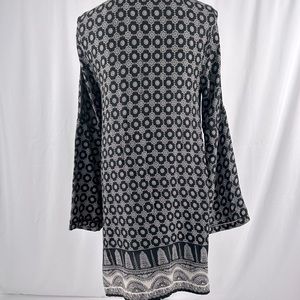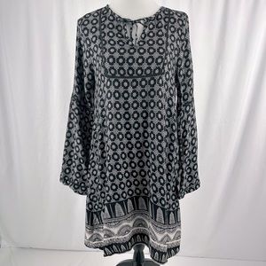 Roxy Brilliant Sky long sleeved mini dress boho bell sleeve Black & White size M