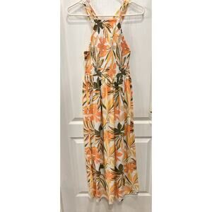 Roxy Bungalow Midi Dress Floral Size SP Hawaiian Smocked Halter Boho Coastal