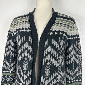 Roxy Cardigan Women Sweater XS/S Blue Green Aztec Tribal Boho Western Open Front