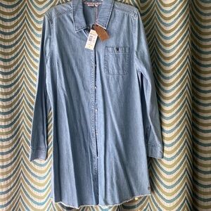 Approx measurements 22” bust, 35” length, raw hem, button down