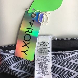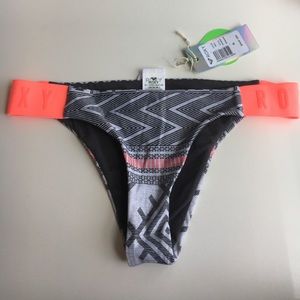 Aztec print, gray and pink Roxy swimsuit bottoms.