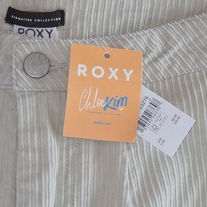 Roxy Chloe Kim Corduroy Pants NWT Wide Leg Cream High Waist Cotton size 28 NEW