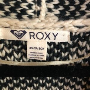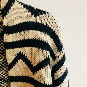 Chunky Roxy cardigan sweater in a black and ivory cream tribal print.