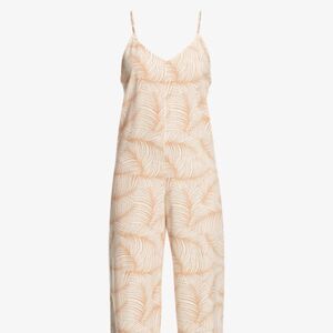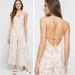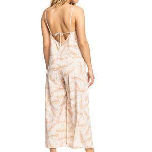 Roxy Close to You Palm Print Tie Back Wide Leg Jumpsuit Women's Tan Size M NWT