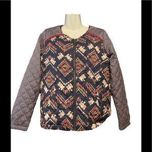 Cool, lightweight bomber jacket from Roxy / Quiksilver has an Aztec, Abstract print. Quilted and fully lined. Puffer Style.