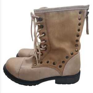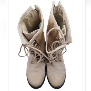 Roxy Combat Boots Concord Women's Tan Canvas Zipper Back Lace Up Size 8 90s Y2k