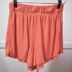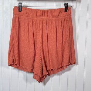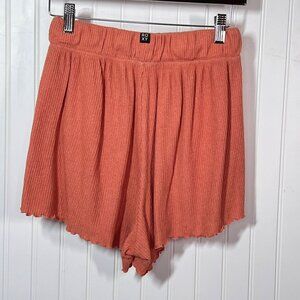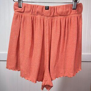 Roxy Coral Orange Ribbed Knit Tulip Hem High Waist Pull-On Lounge Shorts XS