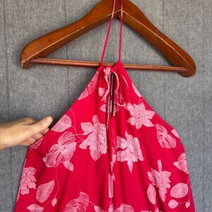 Roxy Coral White Floral Print Red Yellow Sunday Halter Neck Wide Leg Romper Size Extra Large