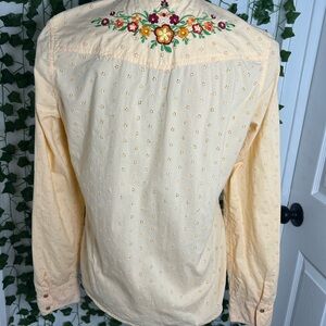 Roxy Cream Casual Button Down Shirt with Embroidered Yoke