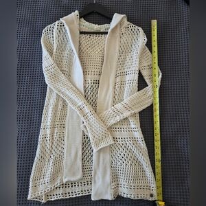 Roxy Cream Open-Knit Hooded Cardigan