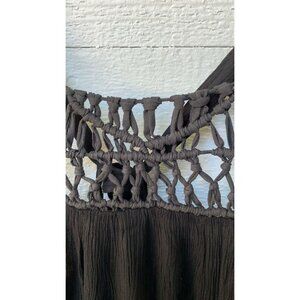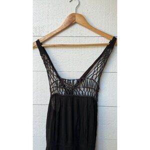 Roxy Crochet Sleeveless Black Long Maxi Dress Macrame S