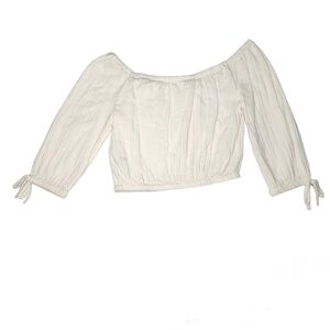 Roxy Crop Top Off the Shoulder 3/4 Sleeve White Bali Shore Gauze Cotton Logo