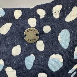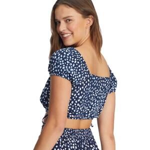 Roxy Dear Amor Crop Top Women’s Size Large – Blue Irregular Dot Print, Square Neckline, Side Cinch with Adjustable Drawstring, Short Puff Sleeves, Cropped Silhouette, Lightweight and Airy Fabric, Feminine and Flirty Design, Perfect for Casual Outfits, Summer Styling, or Layered Looks.
