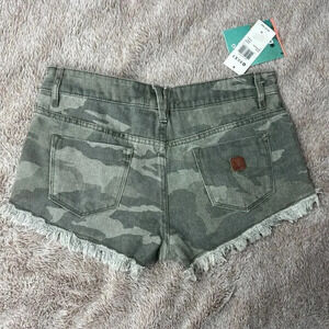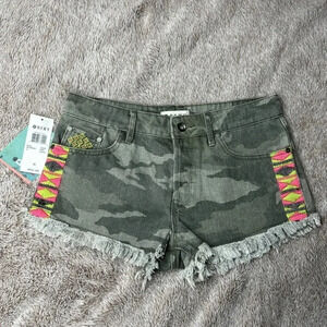 Roxy Denim Shorts Breaking Camo Cutoff Mid Rise Women's Frayed Beaded New
