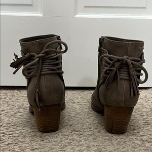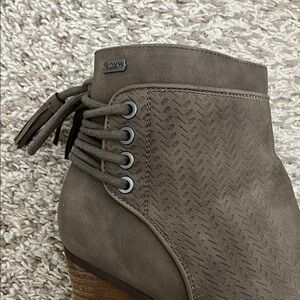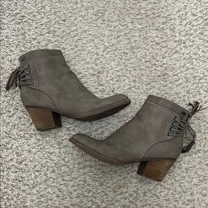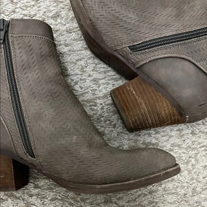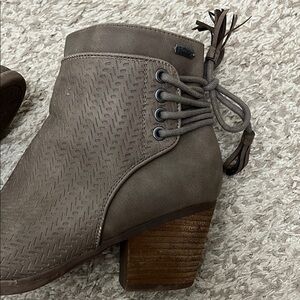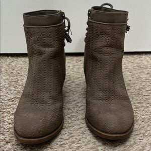 Roxy Devon Taupe Brown Textured Stacked Heel Ankle Booties - Size 9