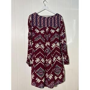 Roxy Dress Boho Chic Tunic Maroon White/Purple Size Medium