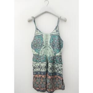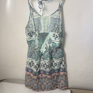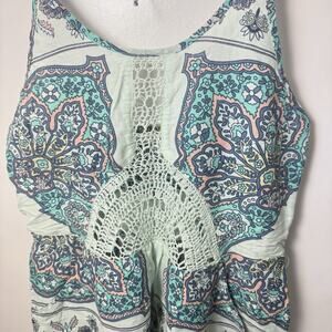 Roxy Dress Size Large Green Dance to the Beat Boho Crocheted Mini Pockets Beachy