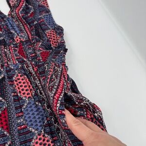 Style: Roxy Dress Women XL Blue Pink Sleeveless Open Back Boho Peasant Hippie Cottage