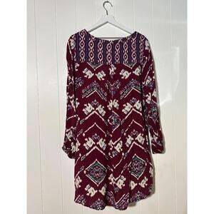 Roxy Dress Womens Medium Boho Tunic Maroon White/Purple