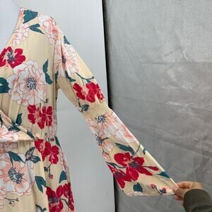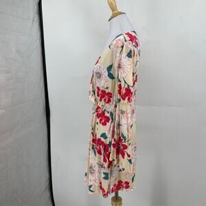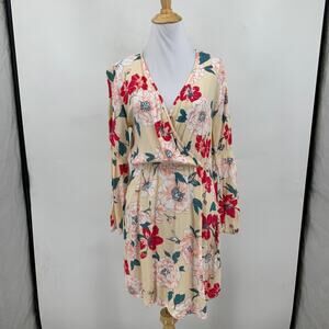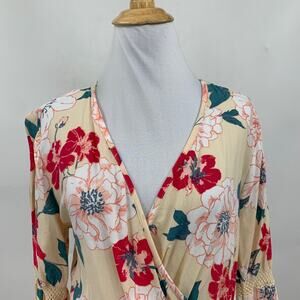 Roxy Dress Womens S Small Ivory Floral Crochet Split Sleeve V Neck Blouson