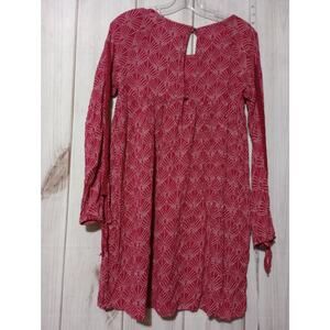 Roxy Dress Womens Small Red White Long Sleeve Boho Tunic Keyhole Viscose Print