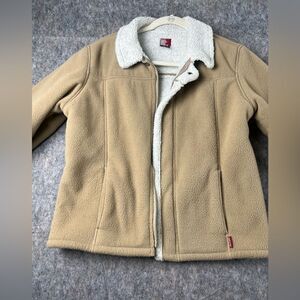 Roxy Fleece Jacket Women's Large Tan White 100% Polyester Long Sleeve Full Zip