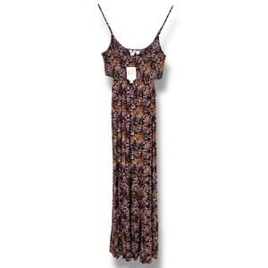 Vibrant floral maxi dress. Features a sleeveless design. Perfect for casual outings.