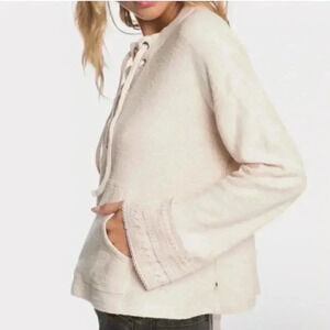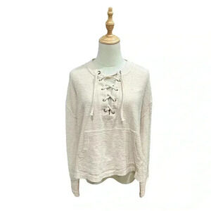 Roxy Get Comfy Light Pink Lace Up Front Crochet Cuff Pullover Sweater Size M