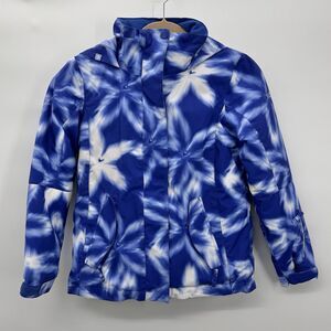 Roxy Girl Jetty Snowboarding Ski Jacket 10 M Hooded Waterproof Blue Floral Coat