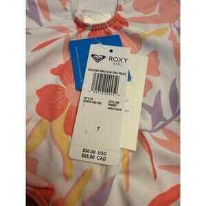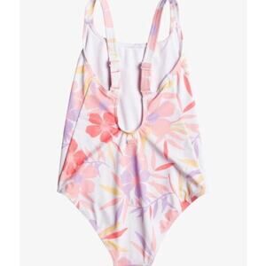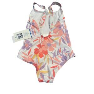 Roxy Girl Second Emotion One-Piece Swimsuit Sz 7 White Multi Floral Swimwear NWT