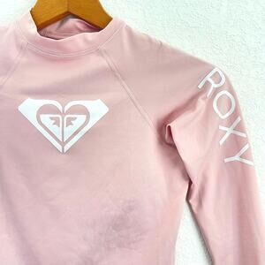Roxy Girls Rashguard Swim Surf Top Sz Large 12 Pink Long Sleeve Heart Logo UPF