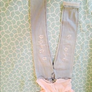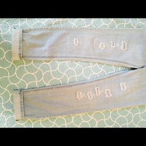 Distressed gorgeous light blue skinny jeans. Size 11 but fits more like a 9. Looks super cute cuffed! worn once.