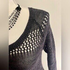 Roxy Gray Open Knit High Low Sweater SZ M