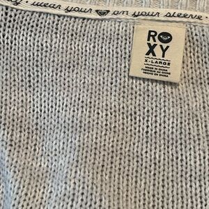 This Roxy cardigan features a chic gray and black color block design, perfect for a stylish layered look. The open front with a draped shawl collar offers a relaxed fit, ideal for casual wear. Made from lightweight knit, it ensures comfort and versatility.