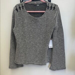 Roxy Gray and White Ribbed Long Sleeve Sweater