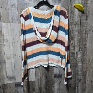 Roxy Hang With Me Multicolor Stripe Knit Hoodie Sweater