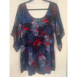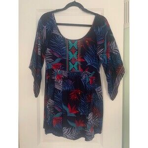 Roxy Hawaiian Floral Embroidered Kimono Sleeve Mini Dress Women's Small Navy.