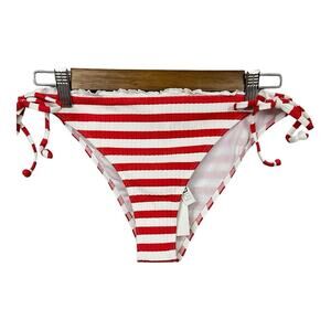 Roxy Hello July Tie String Red and White Ruffled Bikini Bottom Size L NWT
