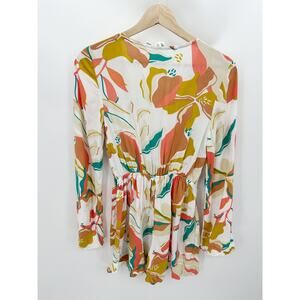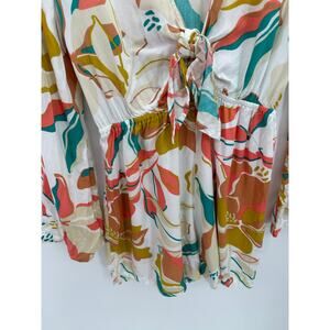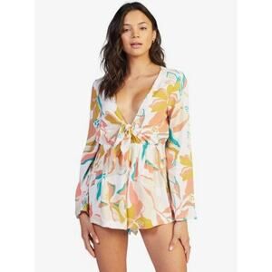 Roxy Here Women Floral Romper Size XS We Are White Boho Hippie Festival Retro