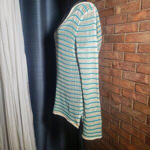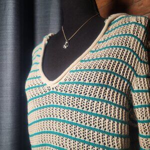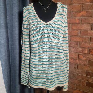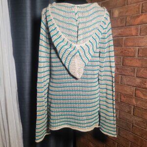 Roxy Hippie Love Open Stitch Teal/White Loose Knit Hoodie Sweater Coverup - XL