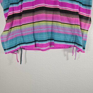 Roxy Hoodie Poncho Women Large Stripe Pullover Short Sleeve Ruched Beach Summer