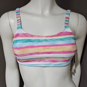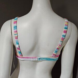 Brighten up your beach look with Roxy's bralette bikini top, which features a sun-faded stripe print. Scoop neckline. Adjustable hook closure at back; adjustable over-the-shoulder straps. Lined. Removable cups.