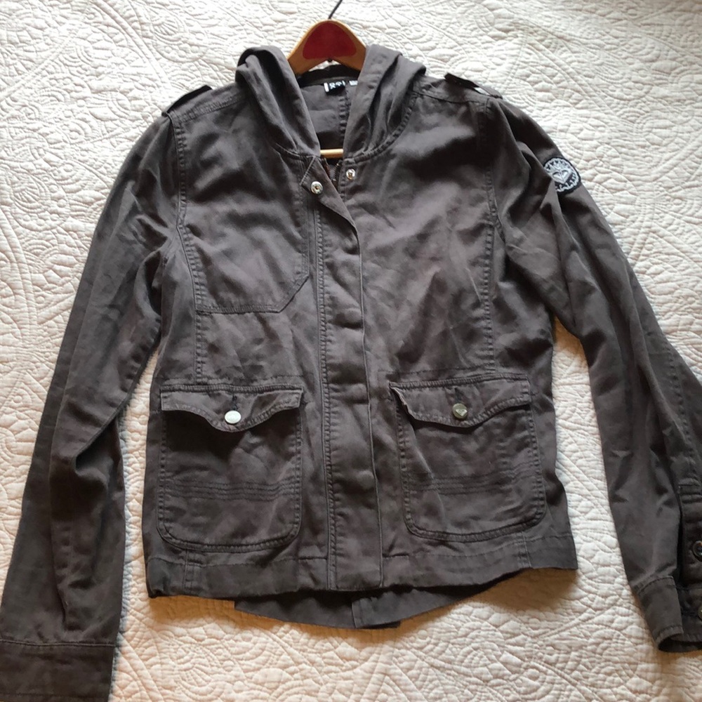 Cute casual brown Roxy Jacket - super comfortable and versatile with light material and utility pockets ✨ only lightly used