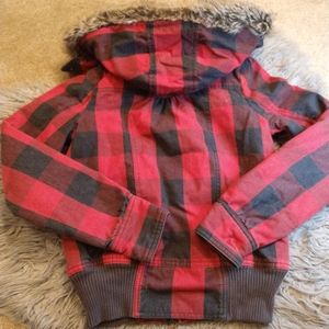 Great condition, no flaws. Size Women's XS. Red and black plaid zip up Roxy winter jacket with furry hood. Super cute and comfortable! Originally $80