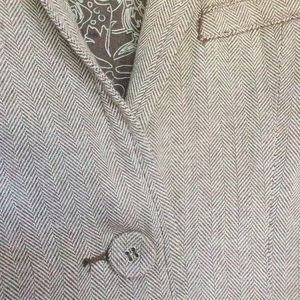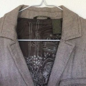 Super cute and in good condition. Fun lining. Comes down to waist. Brown and beige.