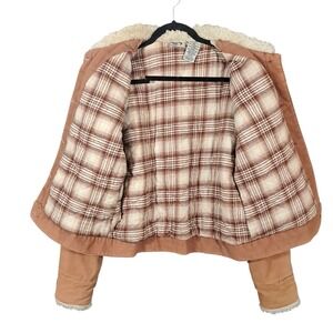 Roxy Jean Corduroy Jacket Sherpa Collar Plaid Quilted Brown Small Y2K VTG Retro