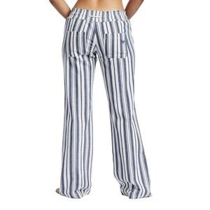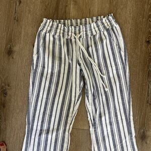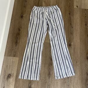 Roxy Juniors Large Linen Blend Pants Pull On Pockets Striped Beachy Travel NEW